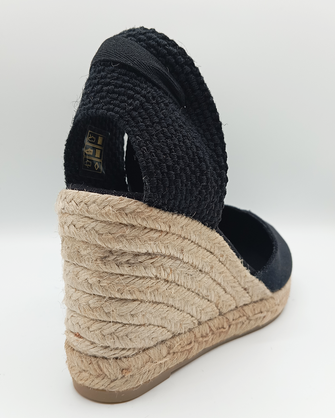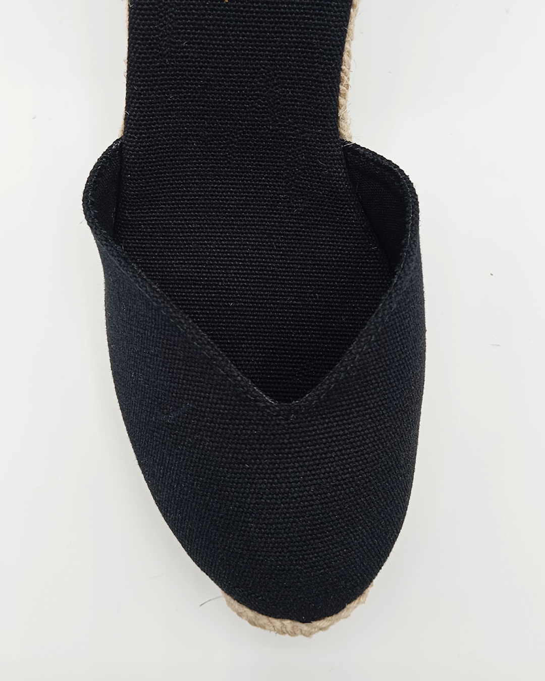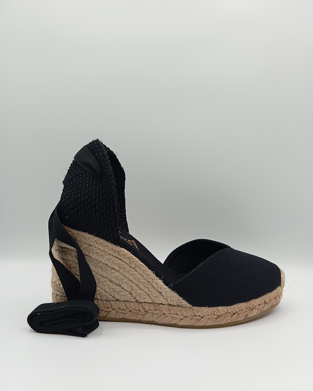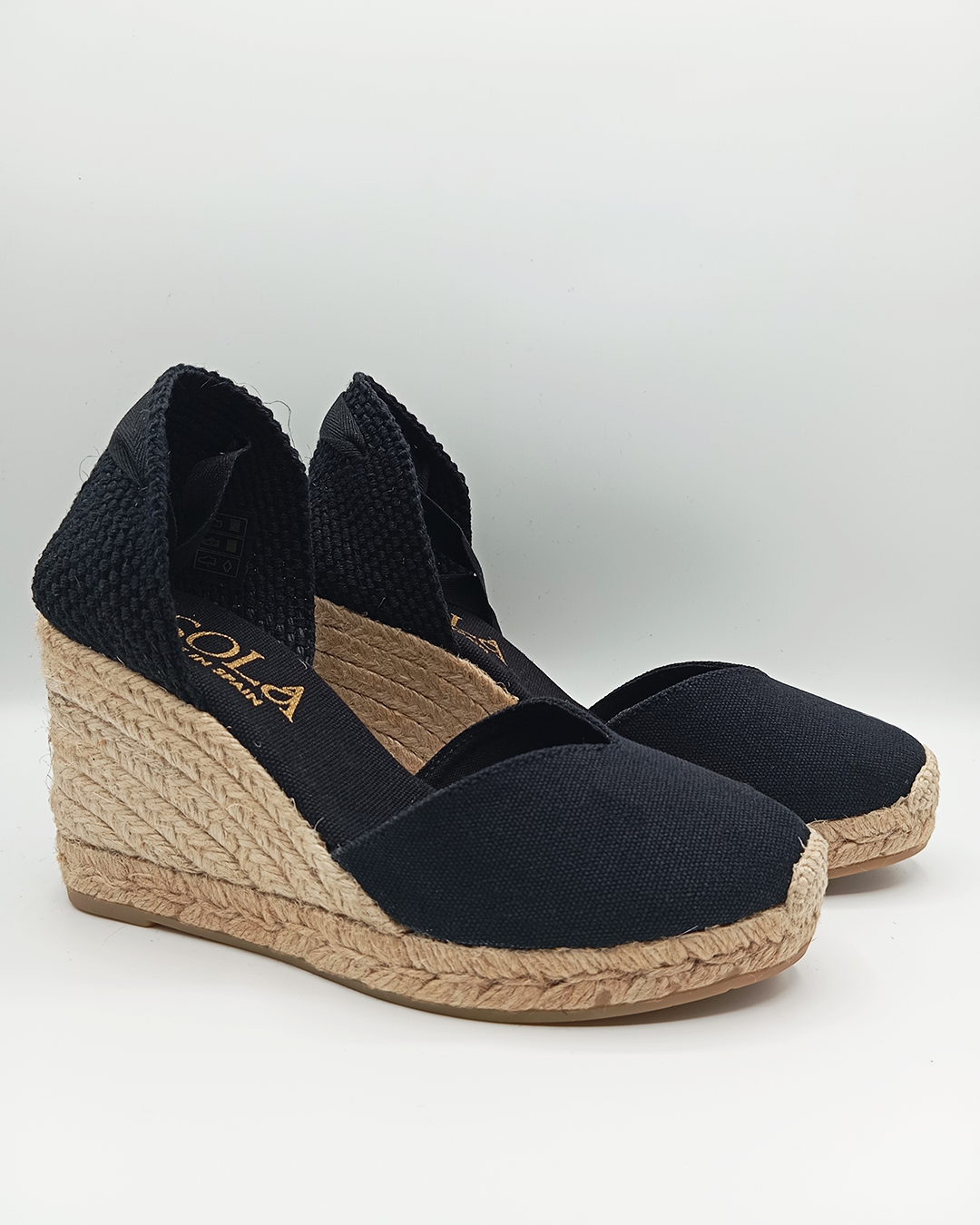 Alpargata de mujer confeccionada en algodón con diseño cerrado, escote en pico y talonera ajustable mediante cintas que se anudan al tobillo. Incluye plantilla acolchada para mayor confort y cuña de yute ecológico de 9 cm con plataforma de 1,6 cm. Elaborada artesanalmente en España, es un modelo icónico y atemporal, cómodo y versátil, perfecto para llevar en cualquier ocasión.