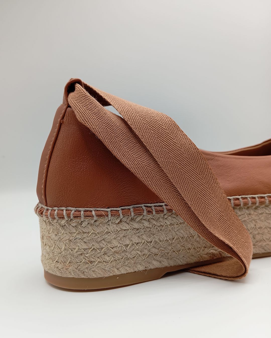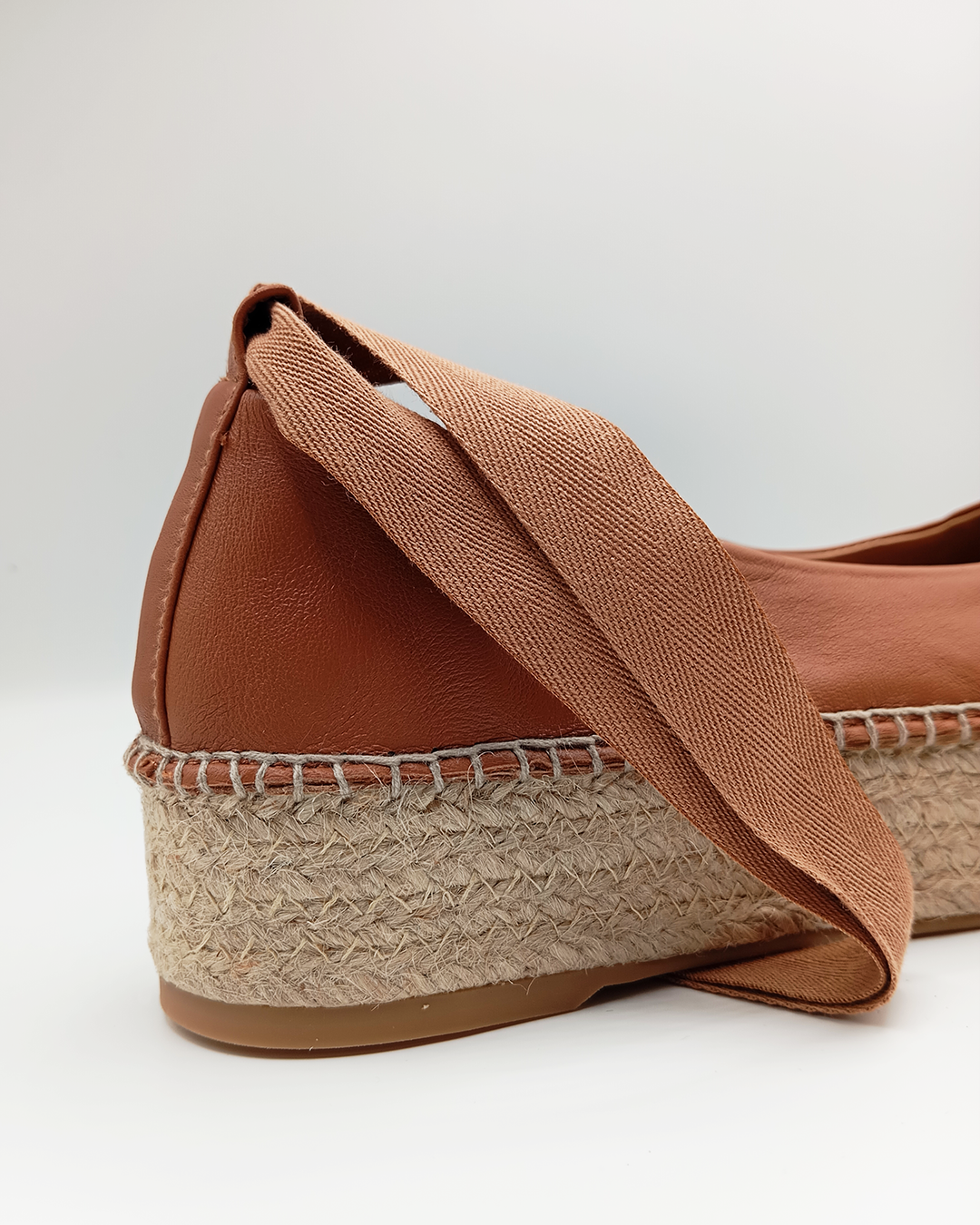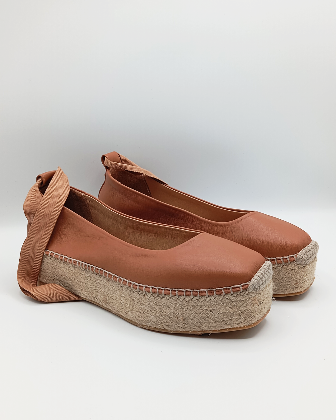 Alpargata de mujer elaborada en piel grabada con diseño tipo bailarina y delicadas cintas que se anudan al tobillo. Forro y plantilla acolchada en piel para un confort absoluto, sobre una plataforma de yute ecológico de 4 cm. Hechas a mano en España, combinan diseño y comodidad a la perfección: suaves, ligeras y versátiles, ideales para completar cualquier look de verano (que en nuestro caso, es todo el año).