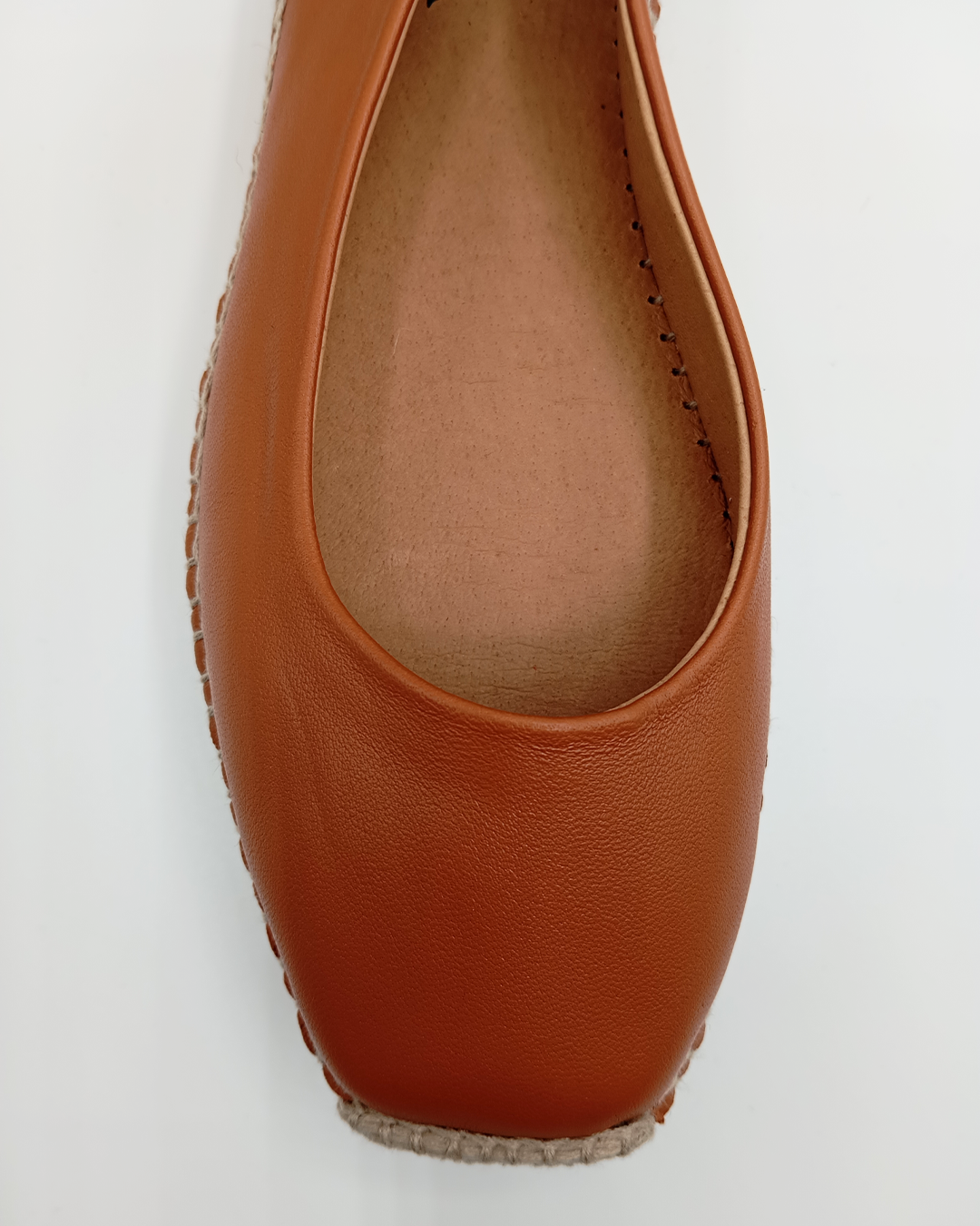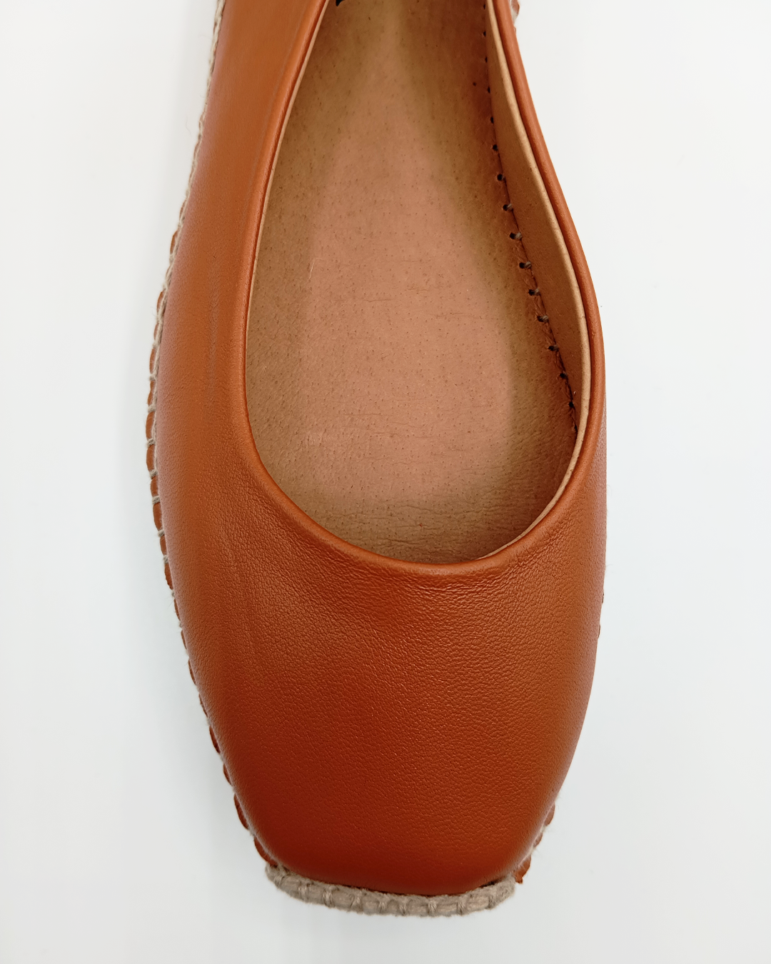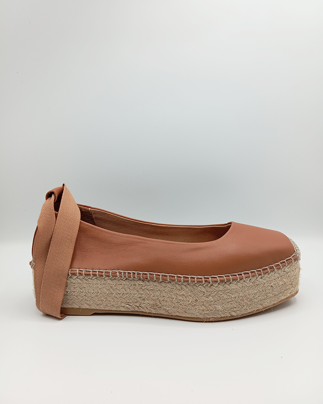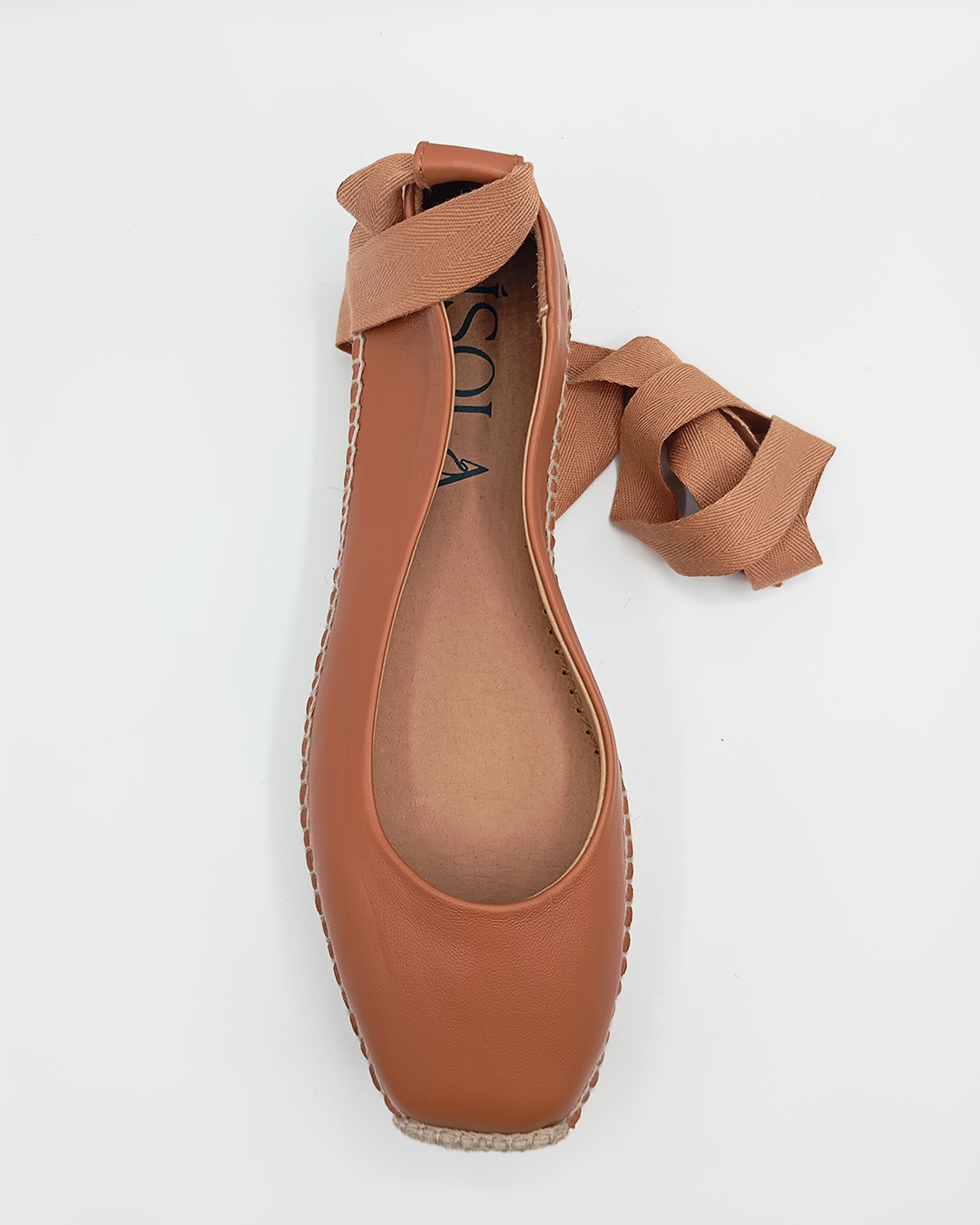 Alpargata de mujer elaborada en piel grabada con diseño tipo bailarina y delicadas cintas que se anudan al tobillo. Forro y plantilla acolchada en piel para un confort absoluto, sobre una plataforma de yute ecológico de 4 cm. Hechas a mano en España, combinan diseño y comodidad a la perfección: suaves, ligeras y versátiles, ideales para completar cualquier look de verano (que en nuestro caso, es todo el año).