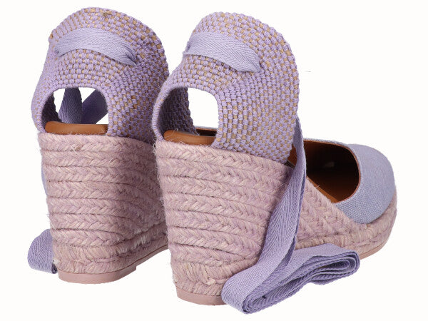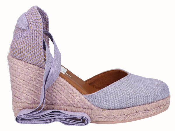 Alpargata valenciana con cintas, cuña alta de yute de 9 cm, de los cuales 7,3 cm son de cuña y 1,7 cm de plataforma. Fabricadas en lino de alta calidad y con plantilla de piel acolchada. Comodidad, durabilidad y versatilidad de un calzado 100% español. Cuenta con la garantía de calidad de Alpargatas Viguera