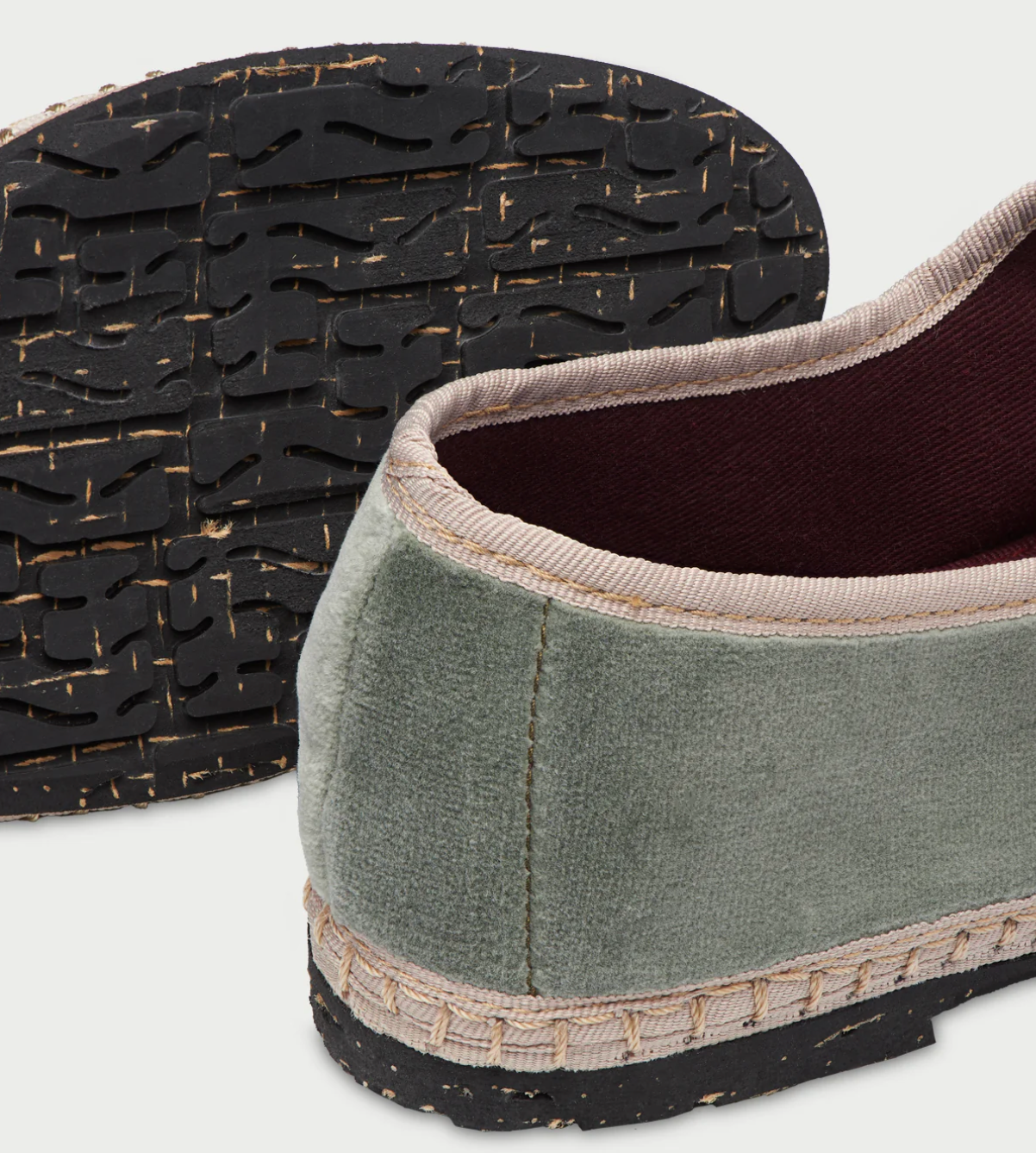 - El exterior del zapato es 100% terciopelo de algodón y el interior del zapato es 100% algodón orgánico con tratamiento antibacteriano.