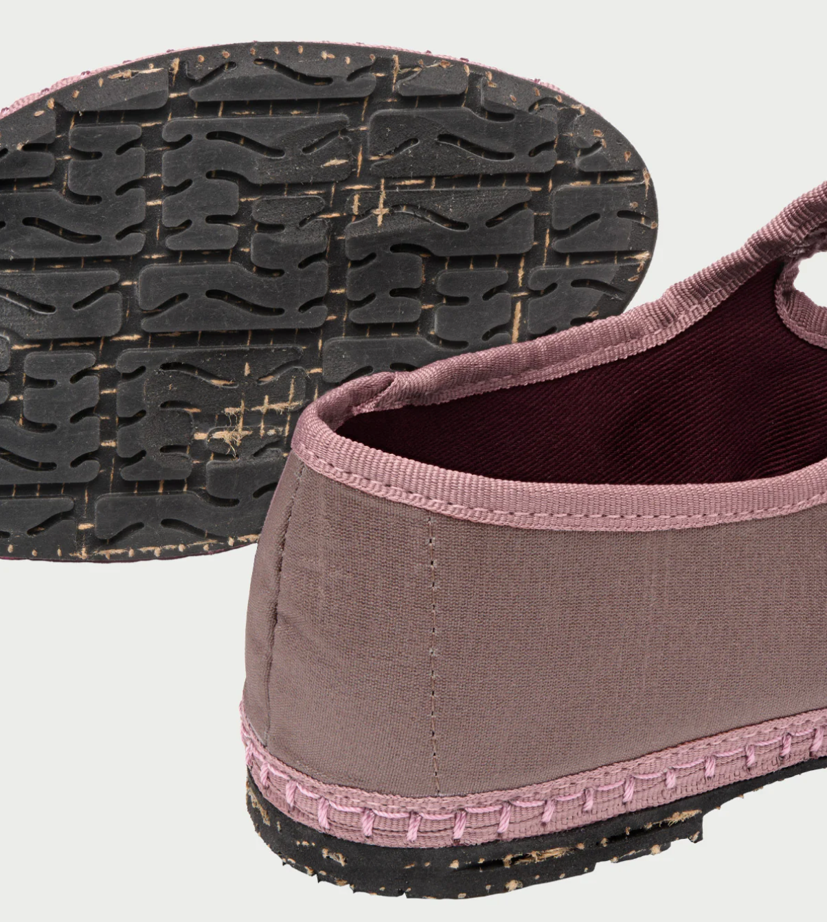- El exterior del zapato es 100% seda y el interior del zapato es 100% algodón orgánico con tratamiento antibacteriano.