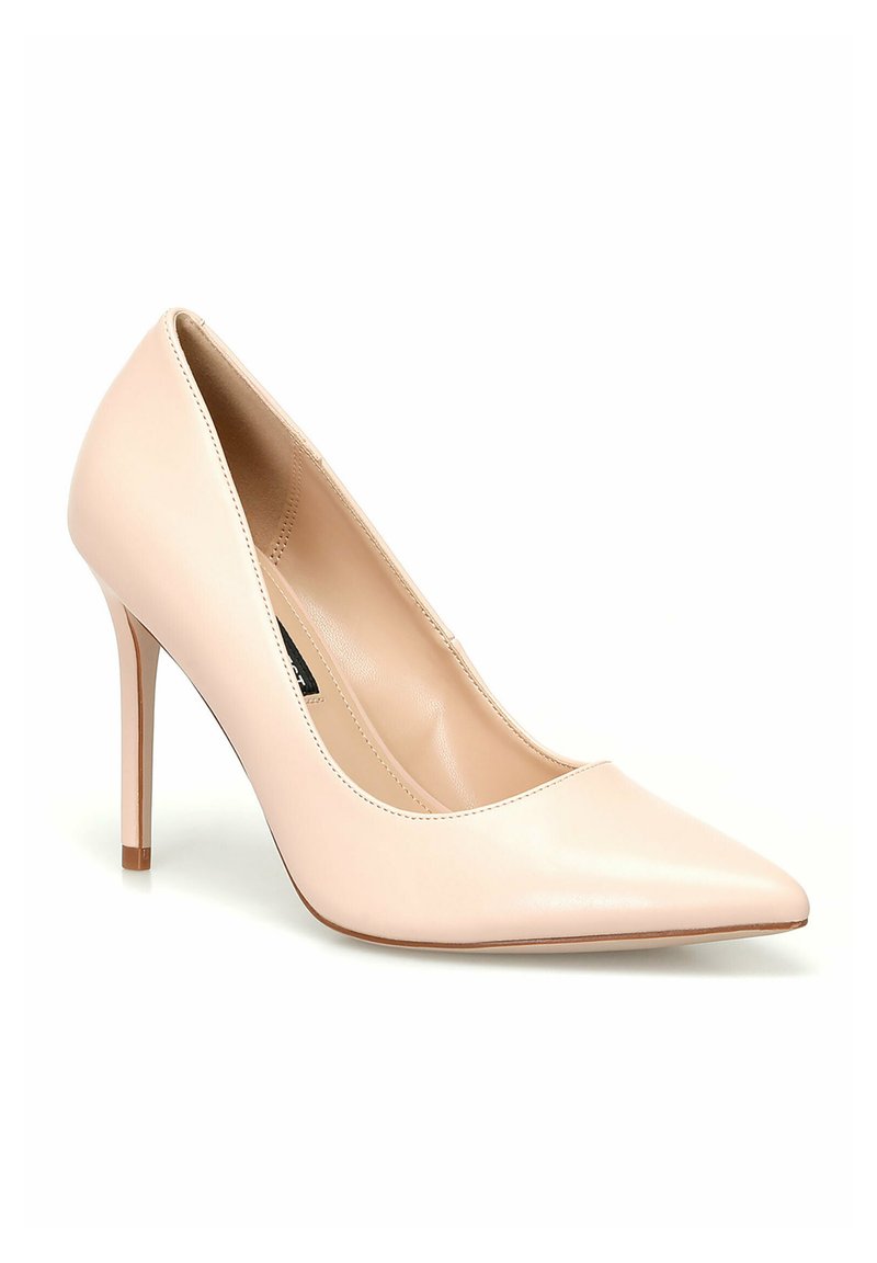 Confeccionado en piel sintética de acabado suave en tono nude, este modelo combina elegancia con versatilidad