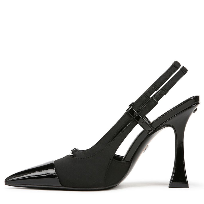 Presentamos Odessa: un elegante zapato destalonado con puntera, detalle de doble tira y tacón acampanado. ¡Sin duda, destacarás con este modelo!