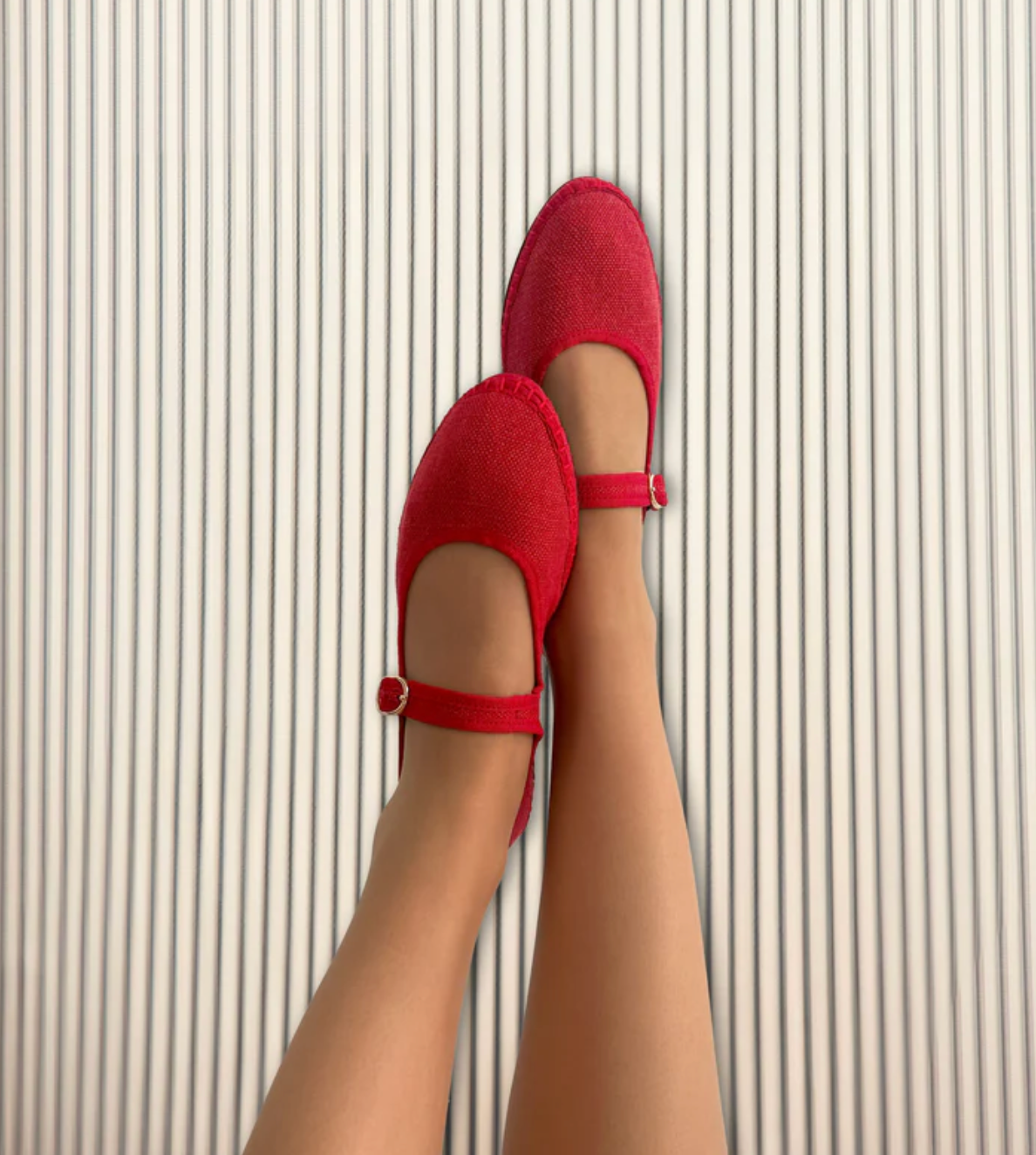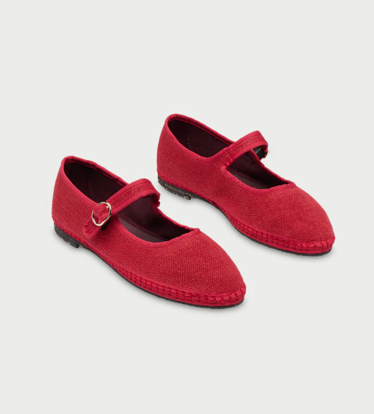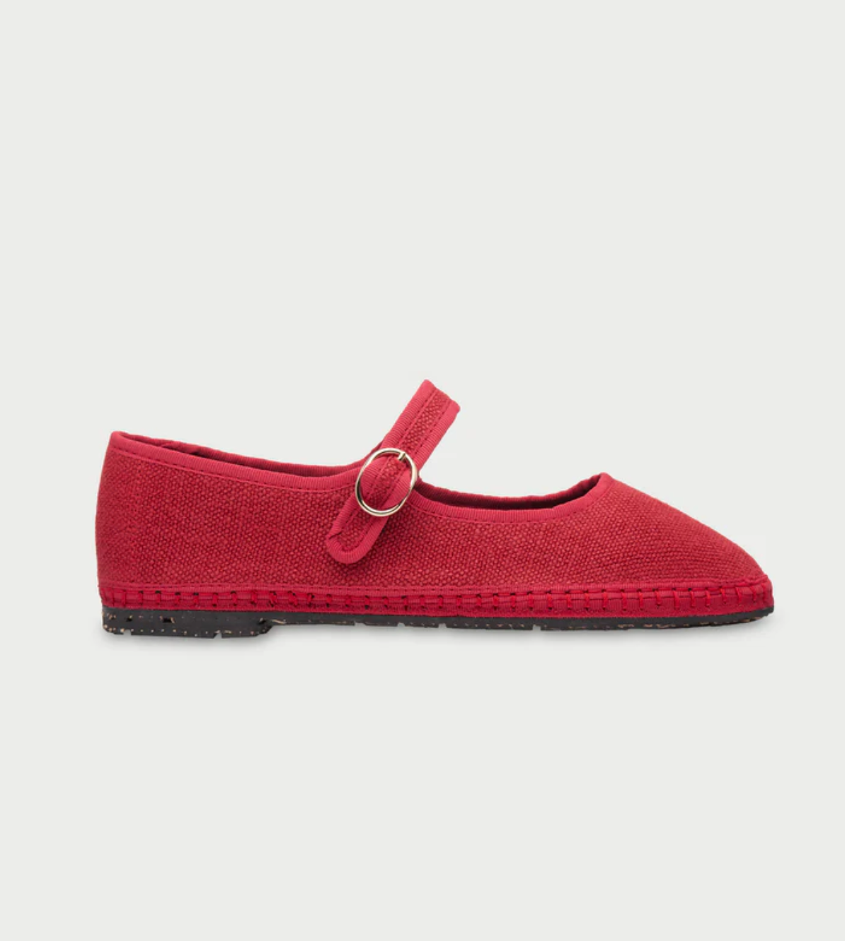 - Mercedita de lino en color rojo con ribetes rojos y cierre de hebilla.