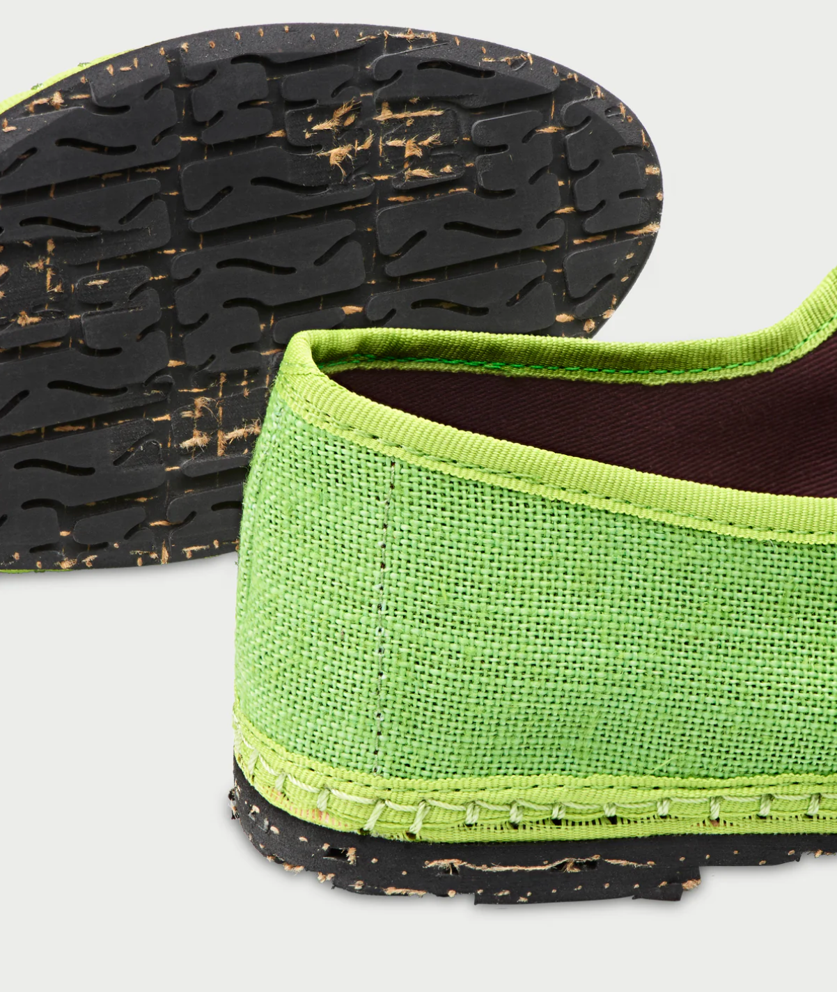 - El exterior del zapato es 100% lino y el interior del zapato es 100% algodón orgánico con tratamiento antibacteriano.