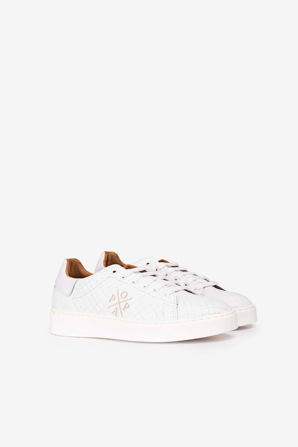 - Color: Predomina el blanco: parte superior, detalle trenzado, posiblemente con detalles a juego en la suela o el ribete.