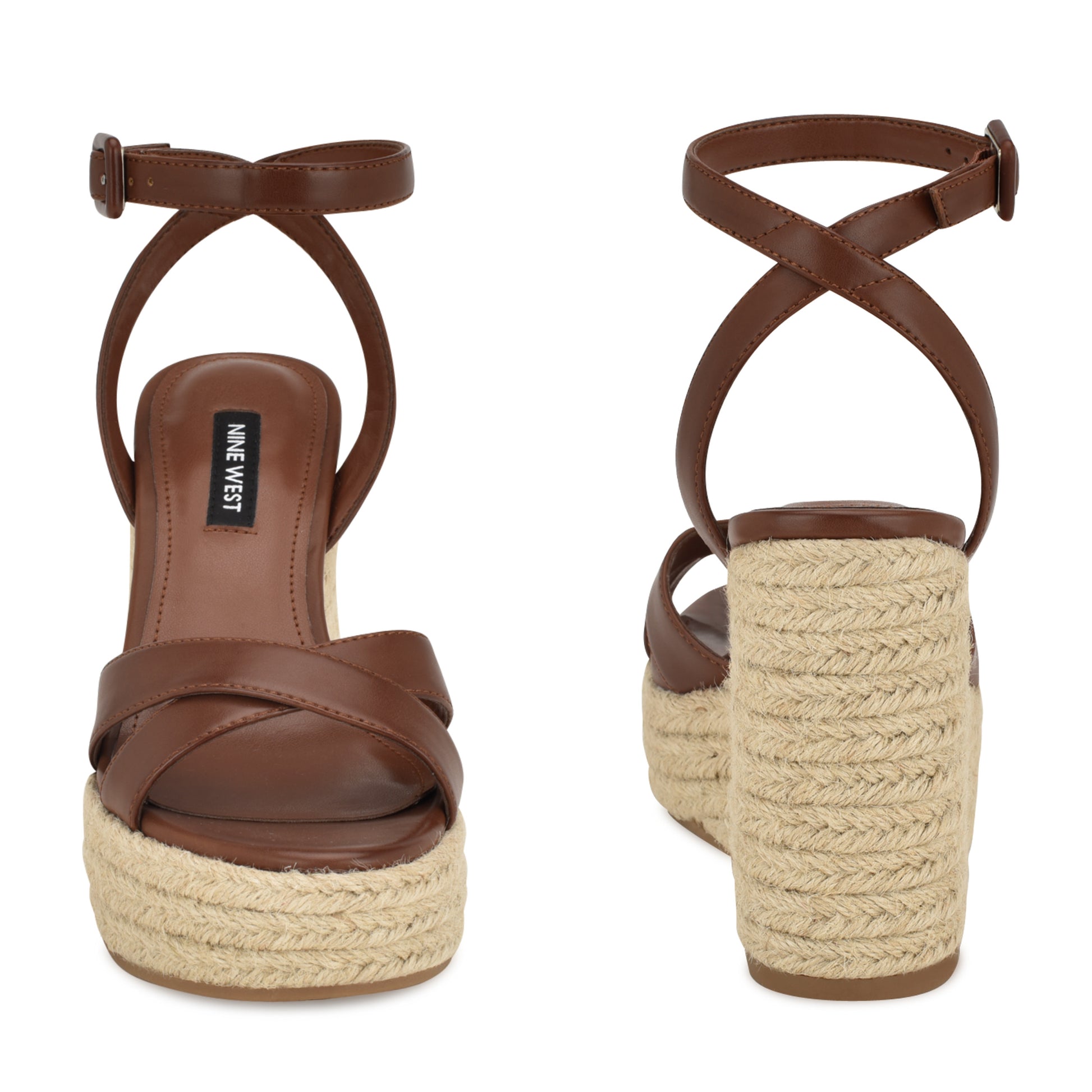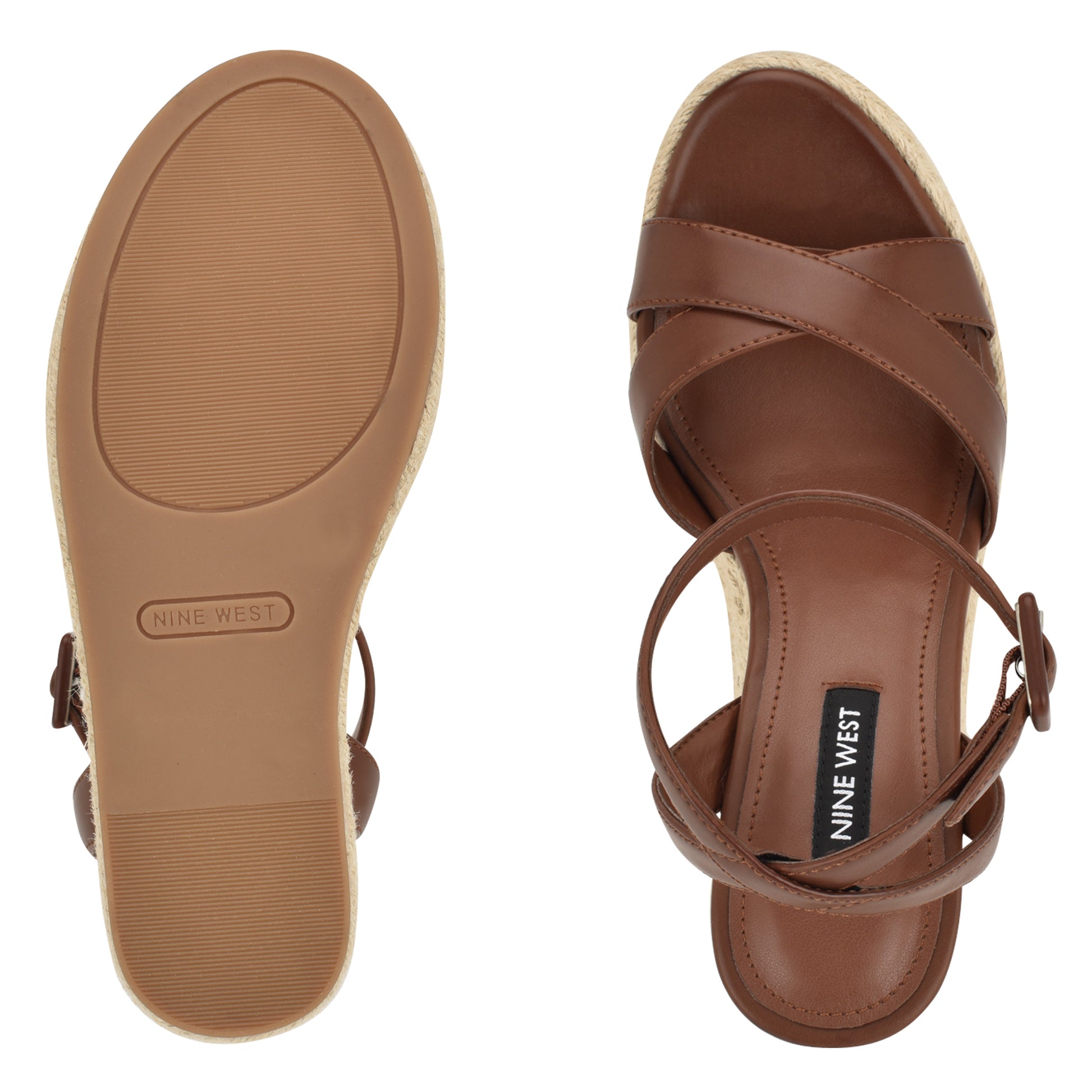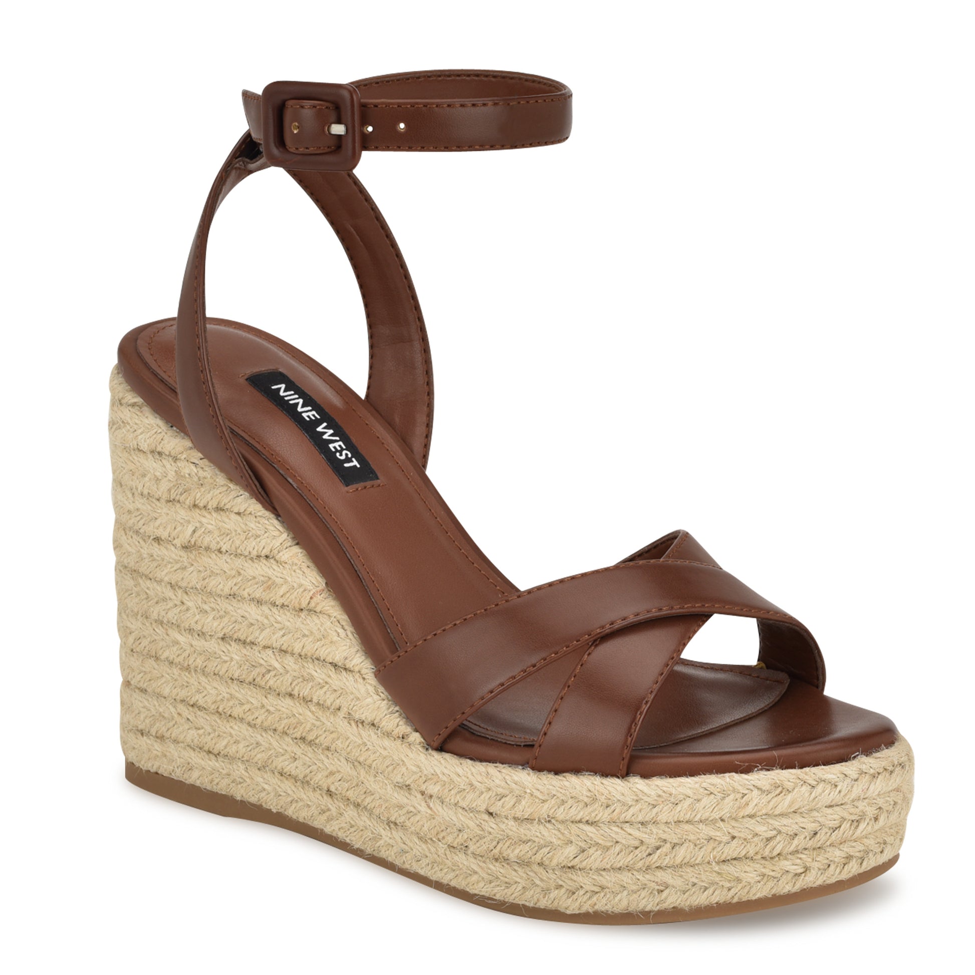 - Renueva tu armario con las sandalias de cuña Earnit de Nine West. Esta sandalia cuenta con una correa ajustable en el tobillo, tiras cruzadas y una elegante punta redonda que le aporta un toque de sofisticación. Fundada en 1978, Nine West empodera a las mujeres para conquistar el mundo con estilo, de día y de noche.