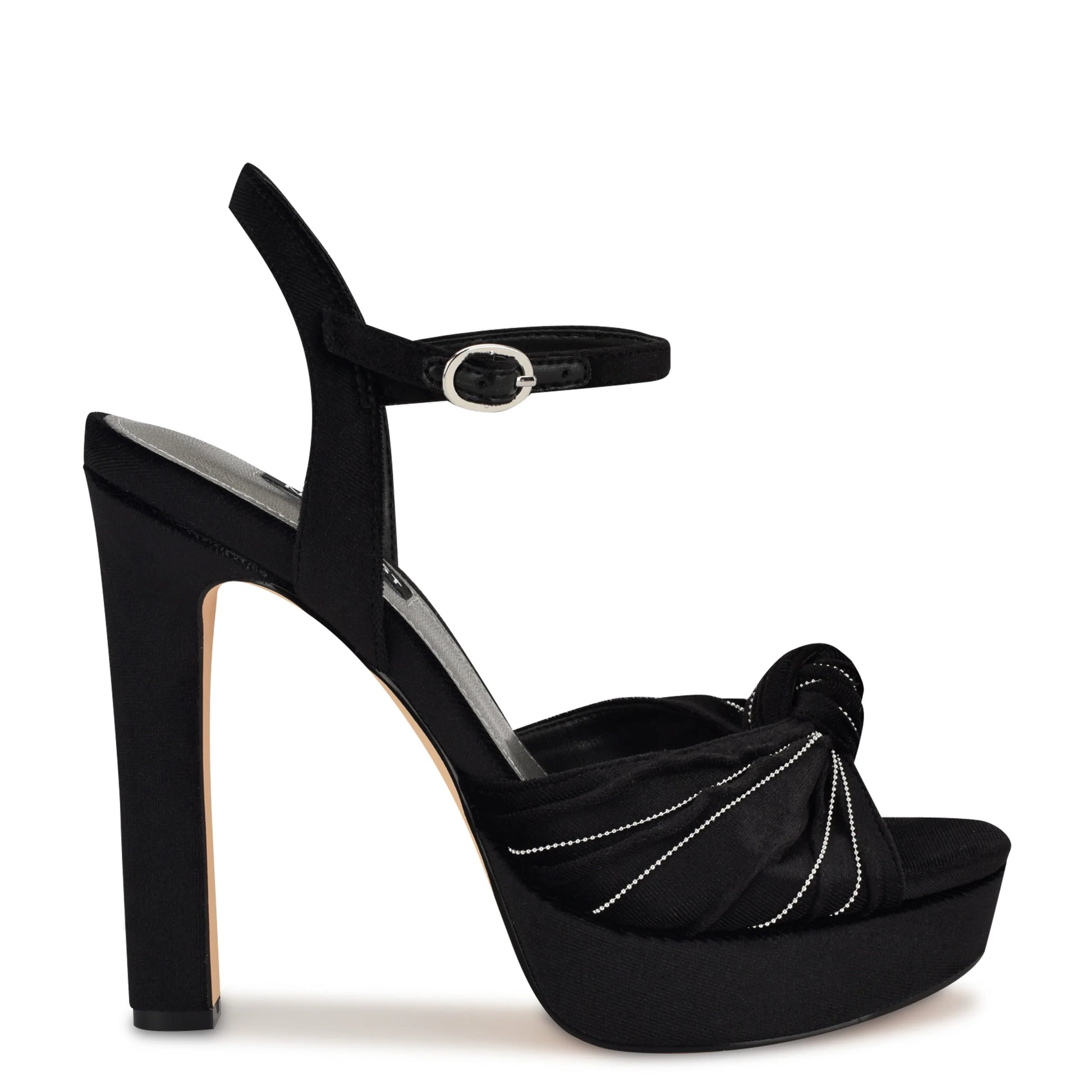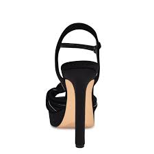Da un paso firme en estilo y presencia con esta sandalia de plataforma de Nine West en color negro. El diseño incluye un detalle de nudo en la parte superior, una punta abierta que añade ligereza al look y una altura de tacón que realza sin perder equilibrio.